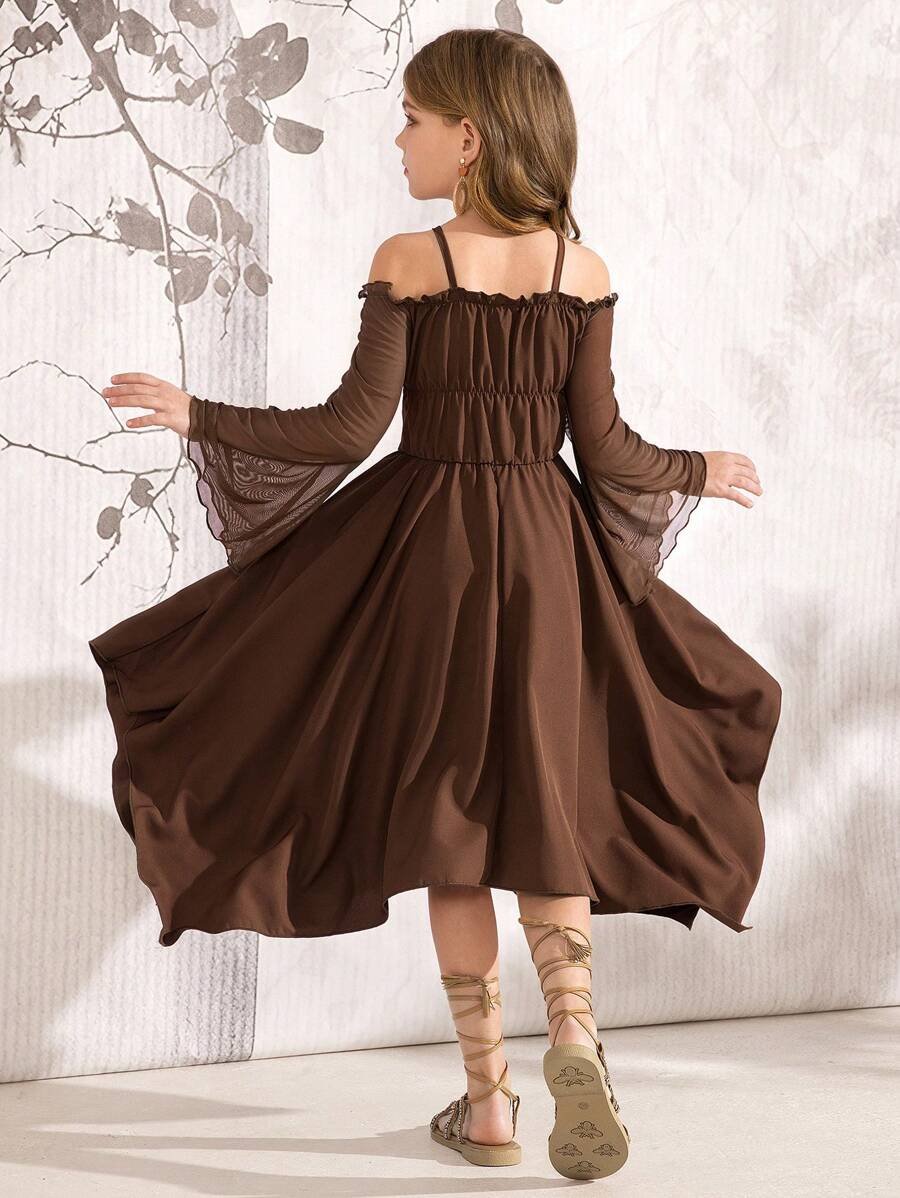 Robe asymétrique élégante à épaules dénudées et manches évasées pour fille