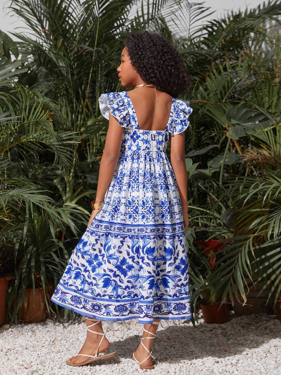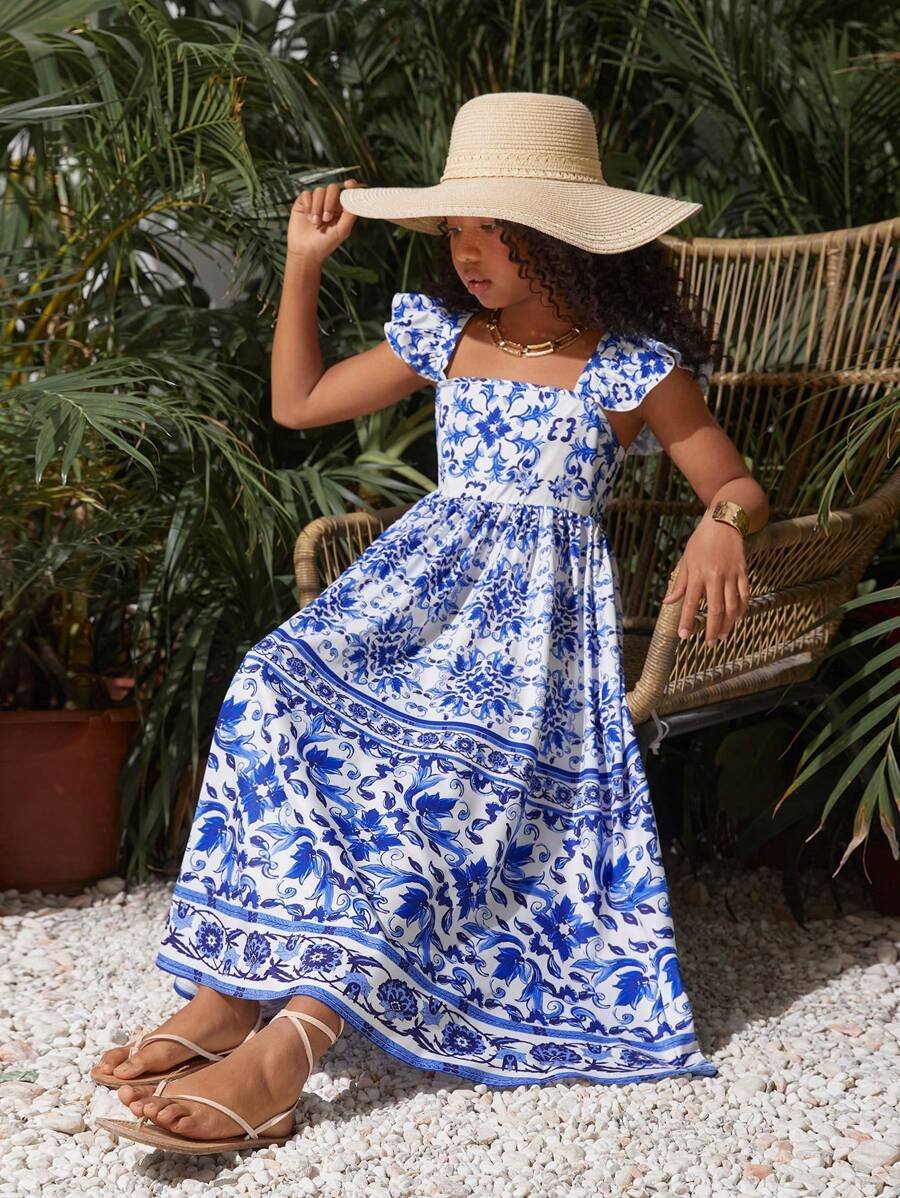 Robe décontractée à manches courtes et col carré pour fillette